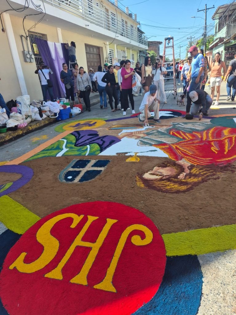 En ese contexto, durante el Viernes Santo, las calles del centro histórico se llenan de color y devoción con la elaboración de más de 60 alfombras de aserrín, consideradas verdaderas obras de arte efímero que reflejan el profundo sentir religioso del pueblo hondureño.